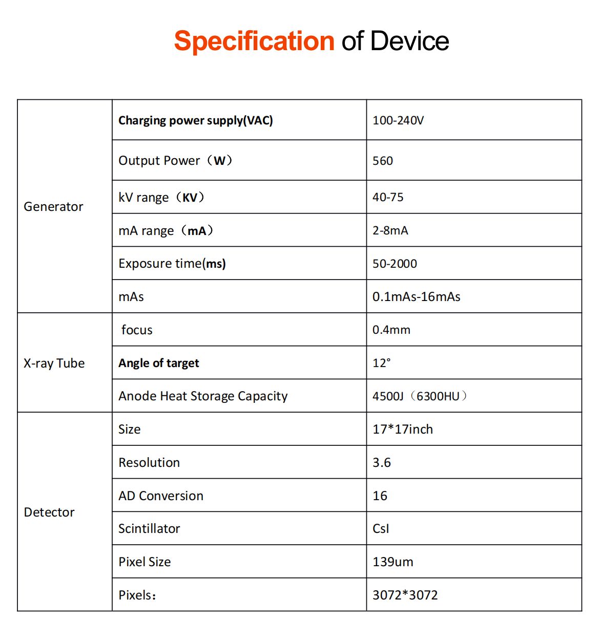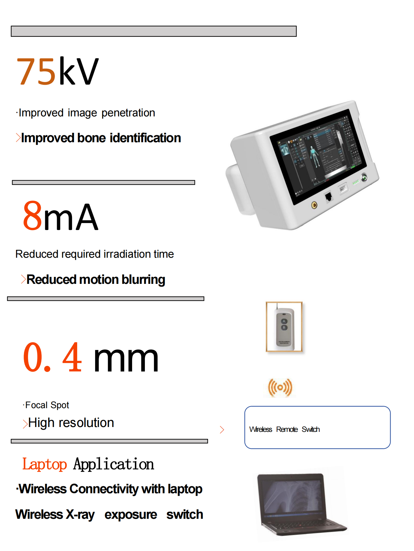 0.4mm Focal Spot>High resolution
