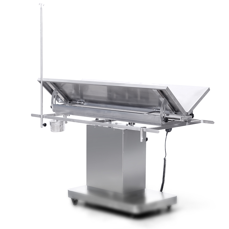 This electric pet operating table is crafted from full 304 stainless steel for superior durability and hygiene. It features motorized height adjustment, Trendelenburg, and lateral tilt functions for precise positioning, complemented by manual front/rear and V-shaped tilting plates. Equipped with a removable surgical tray, sewage drain hole, medical dirt cup, and an infusion stand, it ensures surgical convenience. Silent wheels and a reliable electric lifting controller provide smooth.