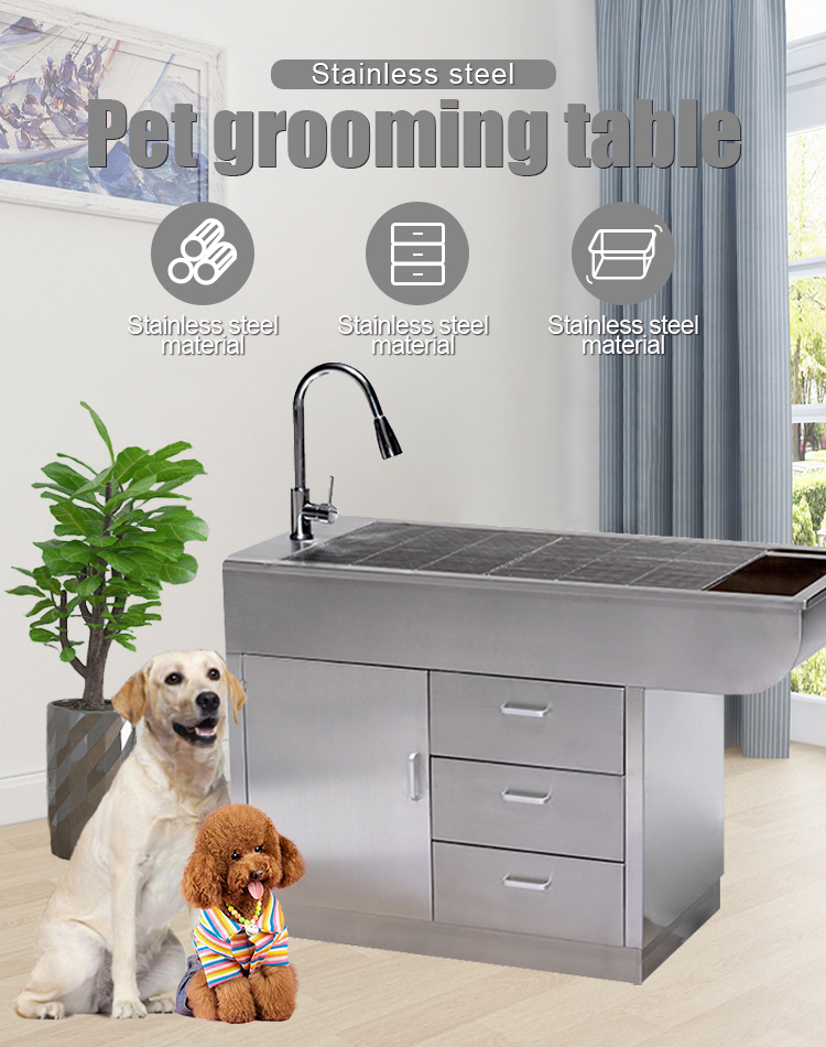 IN-PL01 Professional Pet Grooming Table Stainless Steel Integrated Sink Cold Hot Control Drawer Storage No Dead Angle Design
