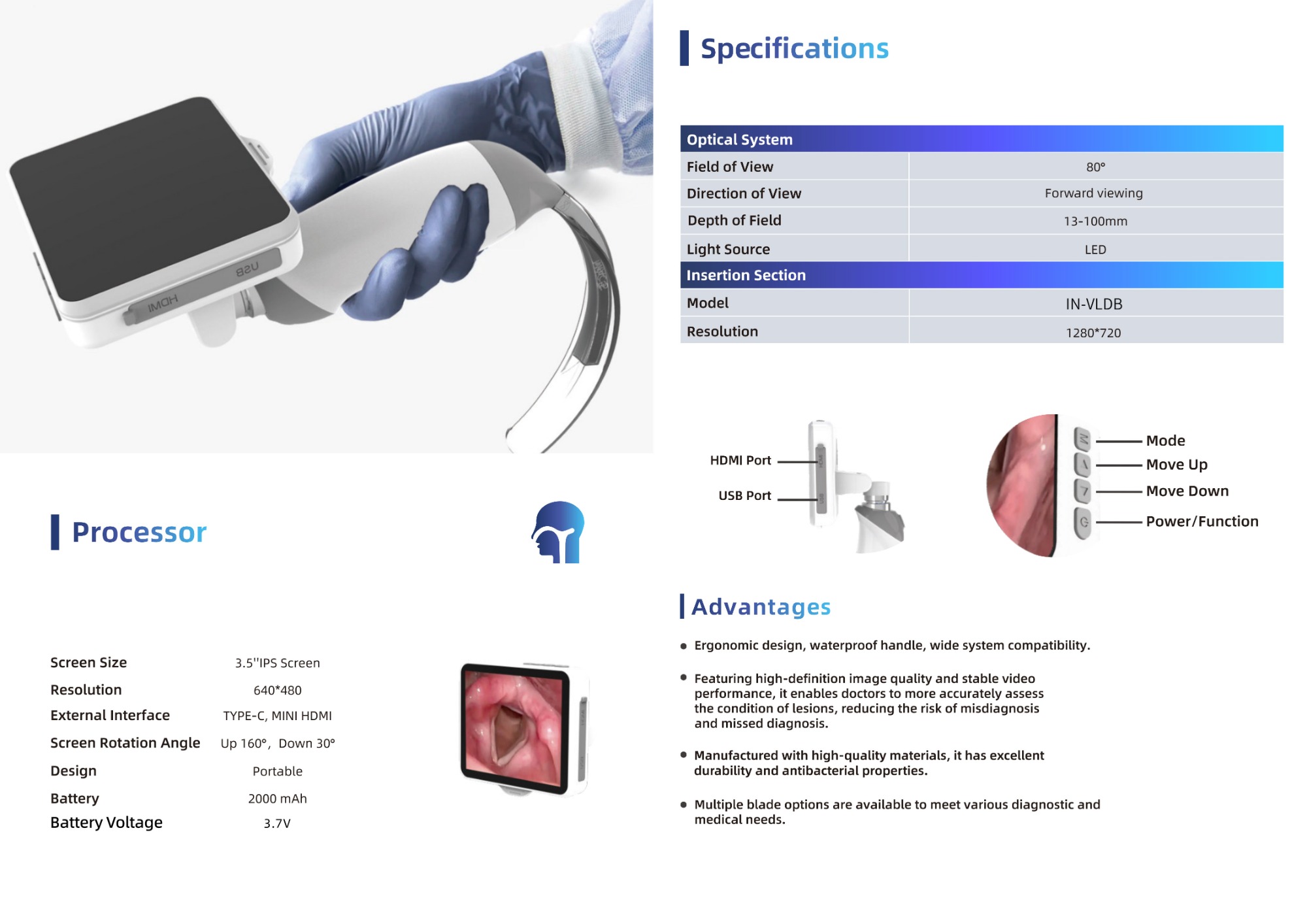 IN-VLDB Professional Medical ENT Video Laryngoscope with Flexible Optical Design