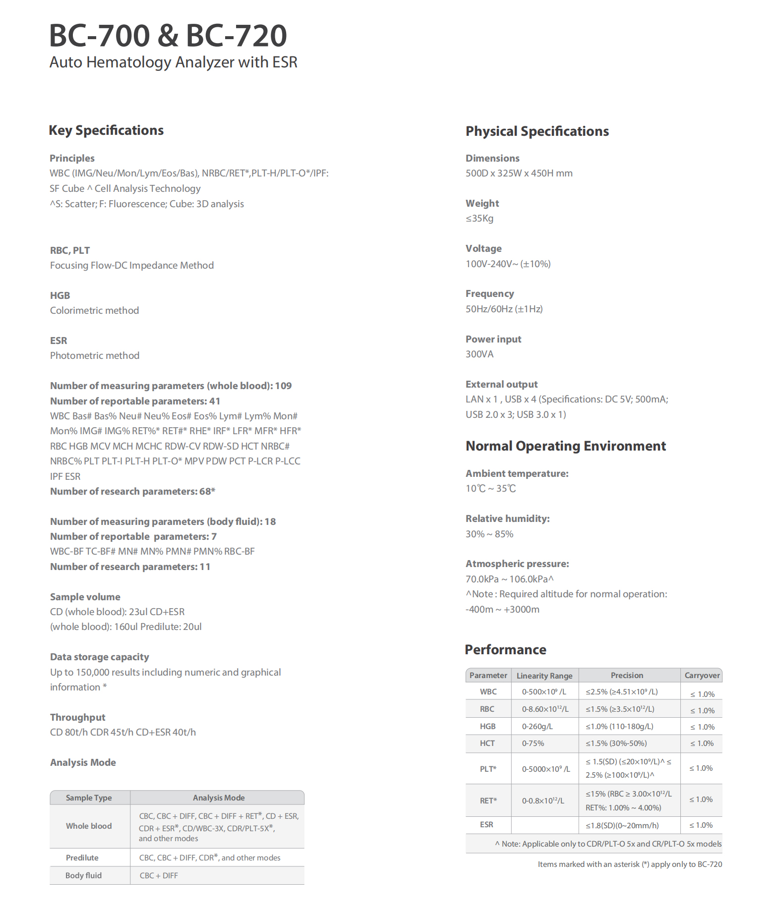 Mindray BC‑700 Series is an automated hematology analyzer with 3‑part differential CBC testing. It delivers accurate results, simple operation, and reliable performance, ideal for small to medium clinical laboratories.