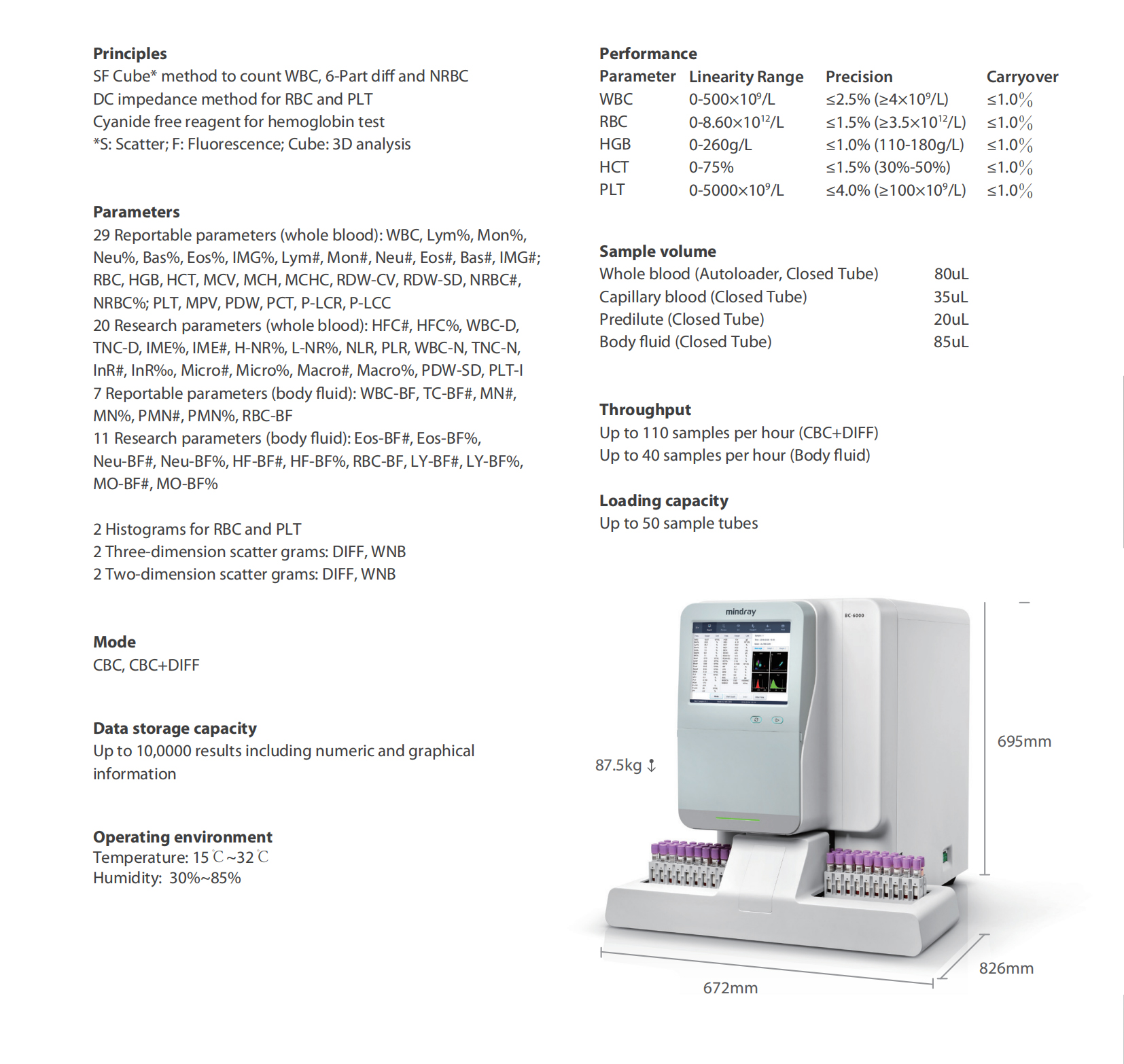Mindray BC‑6000 is an automated 5‑part differential hematology analyzer for CBC and DIFF testing. It delivers accurate results, efficient performance, and reliable workflow, suitable for clinical laboratory blood analysis.