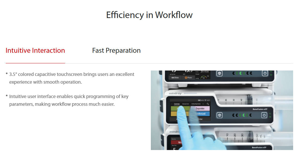 Mindray BeneFusion eSP ex Touch Screen Syringe Infusion Pumps Human Syringe Pump