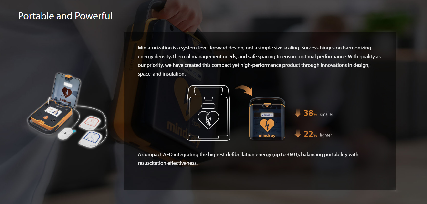Mindray BeneHeart L Series, built to withstand real-world demands, is IP55 rated for dust and water resistance and has passed 1.5m drop tests on all 6 surfaces. It complies with key standards for medical devices and ambulance equipment, guaranteeing durability and reliability in diverse and challenging conditions.