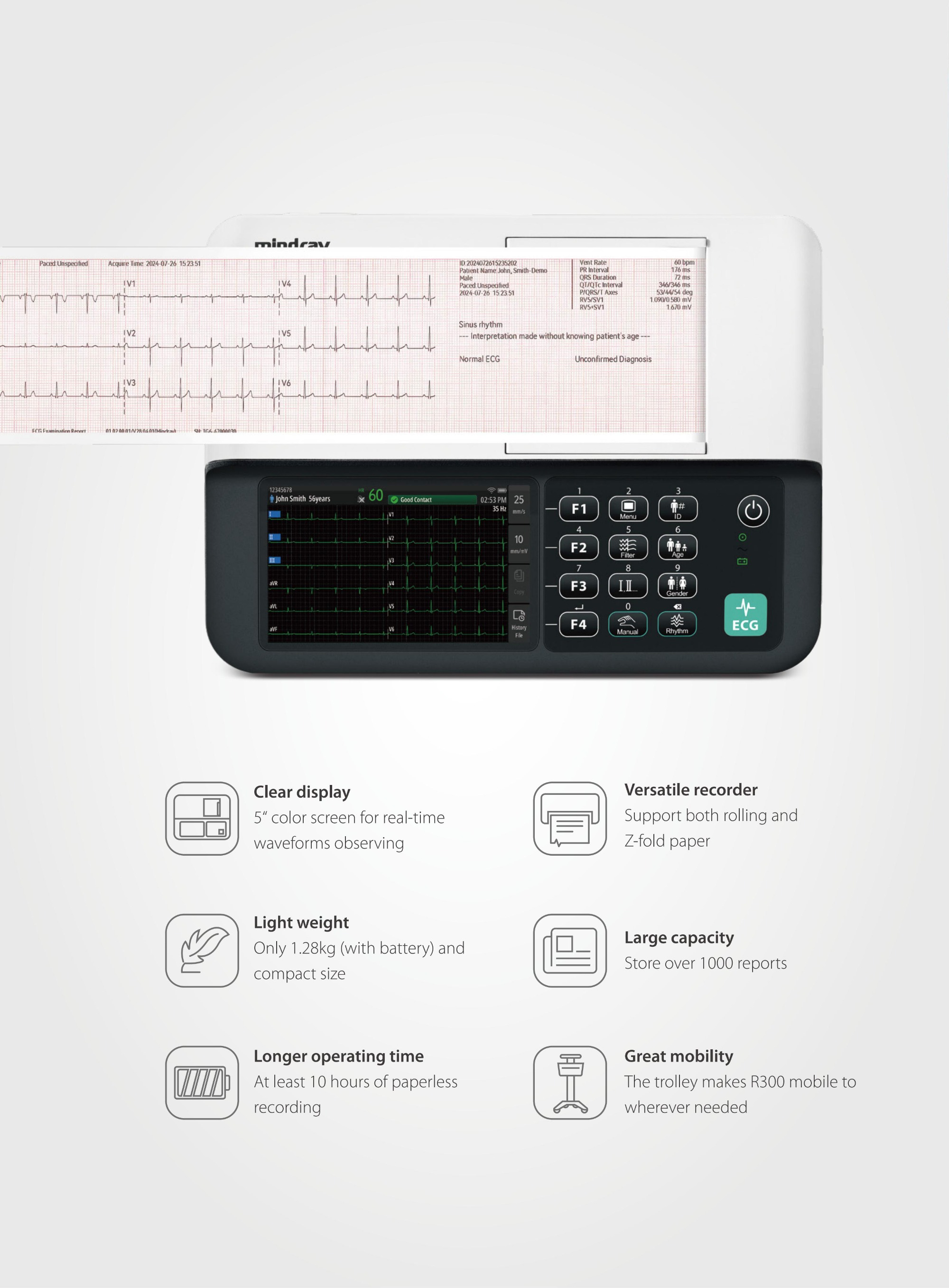 Mindray BeneHeart R300 Medical ECG Device Compact 12-Lead ECG Recorder with Printer