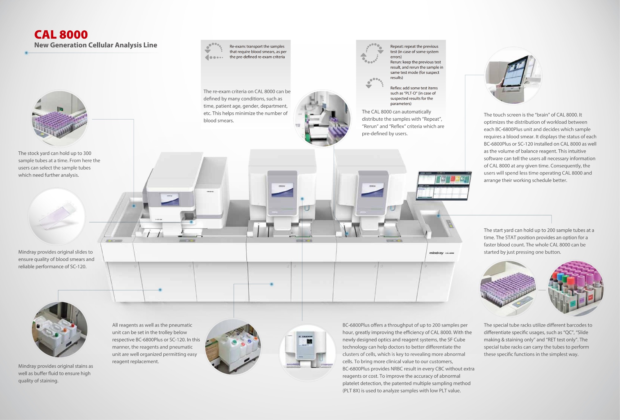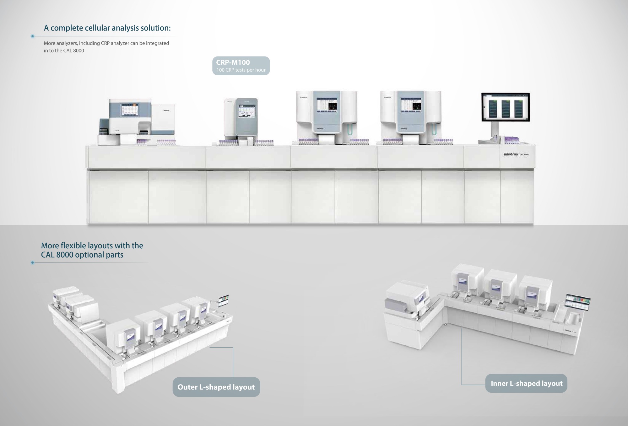 Mindray CAL 8000 is an automated cellular analysis line integrating hematology, CRP, and HbA1c testing. It enables high throughput, accurate results, and efficient sample processing for clinical laboratories, improving workflow and reducing manual operations.