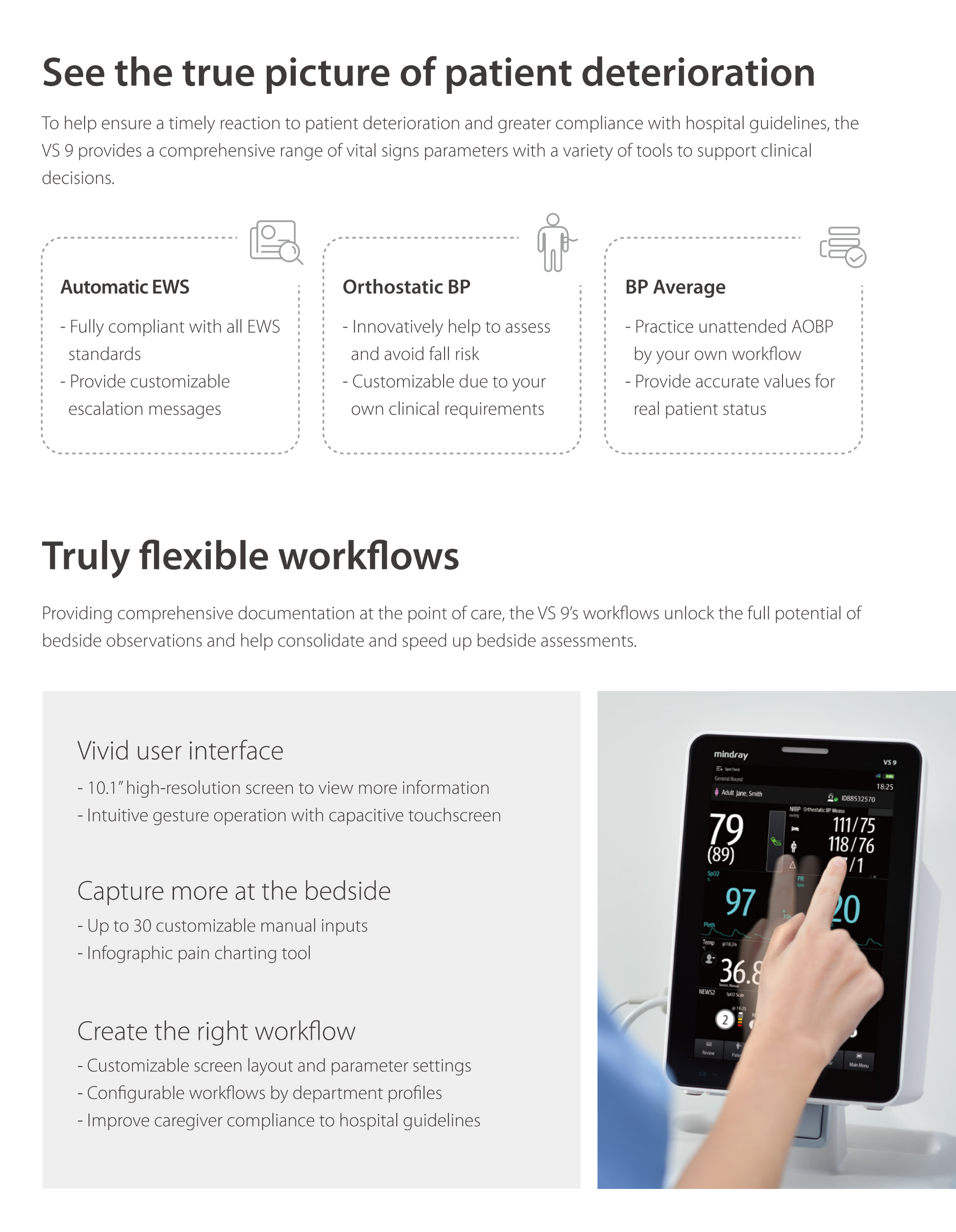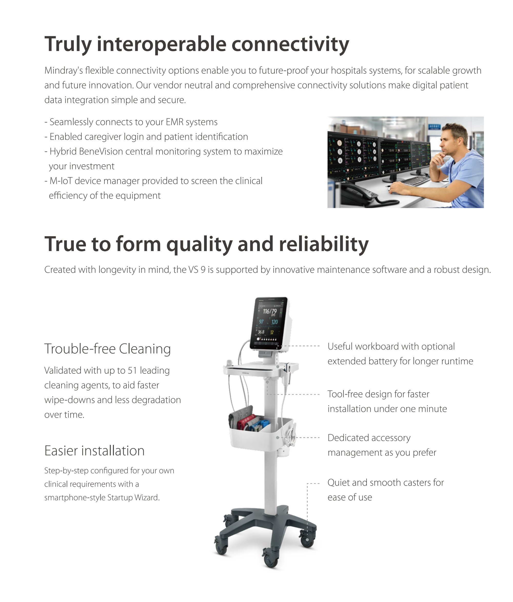 Mindray Vital Signs Monitor VS 9 delivers accurate vital signs measurements easily,maximizing patient comfort and clinical efficiency.