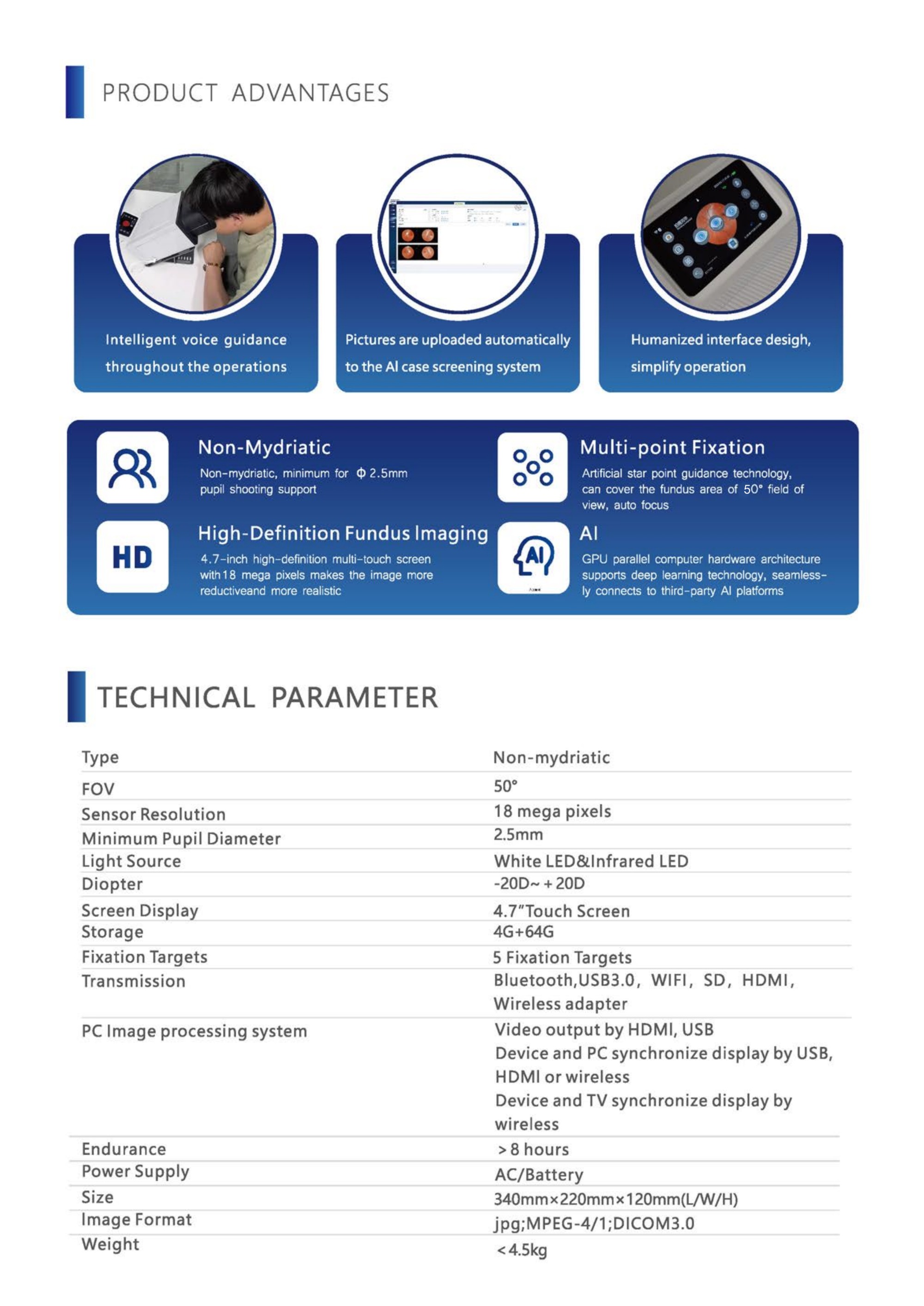 IN-AI Ophthalmic Equipment Fundus Fluorescein Angiography Ffa Automatic Digital Eye Retinal Fundus Camera