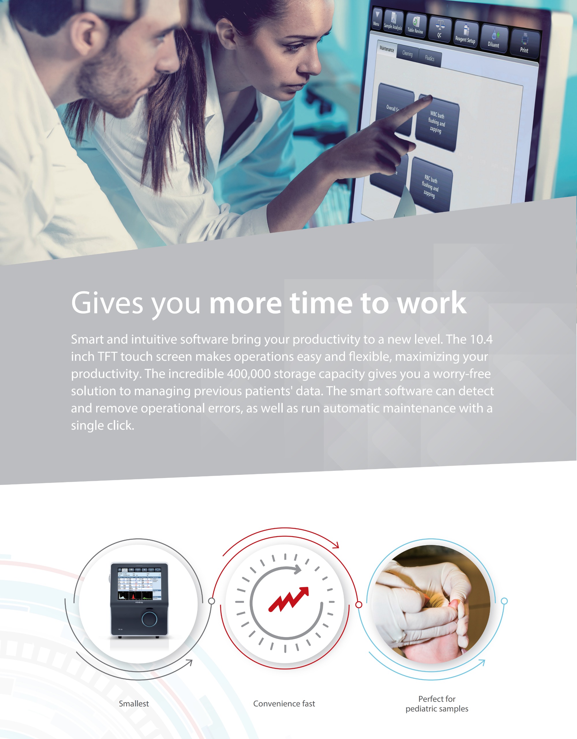 Mindray BC-20s is a compact 3-part differential hematology analyzer providing accurate CBC results. It features user-friendly operation, low reagent consumption, and reliable performance, suitable for small labs, clinics, and hospitals.