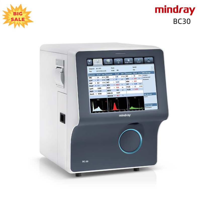 Mindray BC-30 is a compact 3-part differential hematology analyzer delivering fast and accurate CBC results. It features easy operation, low maintenance, and stable performance, making it ideal for small laboratories, clinics, and hospitals.