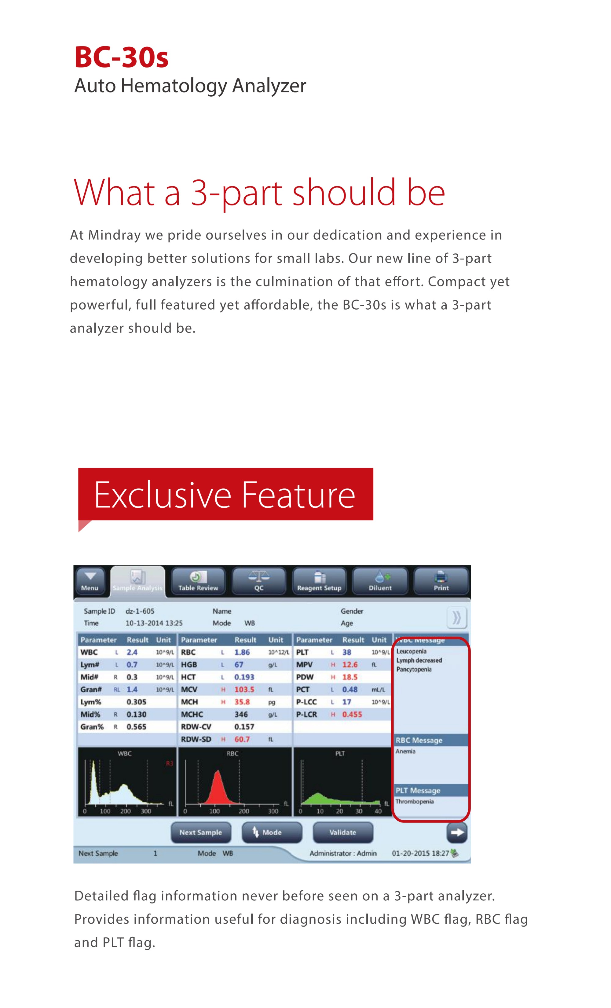 Mindray BC-30s BC30s Auto Hematology Analyzer 3-Part Differential Blood Cell Counter Lab Equipment