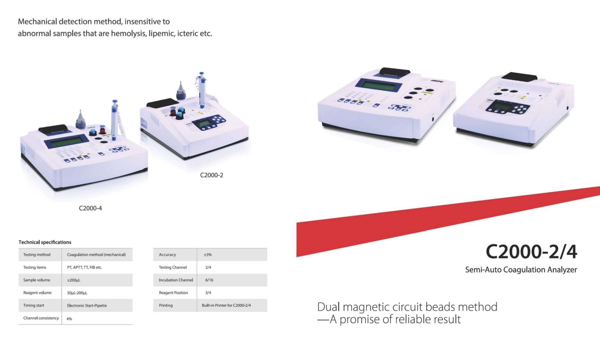 Mindray C2000-4/C2000-2 is a semi-automatic chemistry analyzer designed for clinical laboratories. It offers accurate and stable biochemical testing with easy operation, making it suitable for hospitals and diagnostic labs.