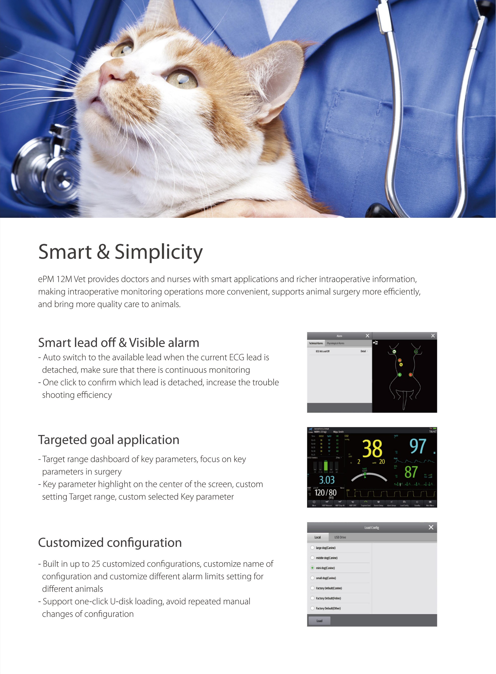 Mindray ePM 12M Vet is a veterinary multiparameter patient monitor for clinics and hospitals. It provides accurate ECG, SpO2, NIBP, respiration, and temperature monitoring, ensuring reliable real-time vital signs observation for animals.