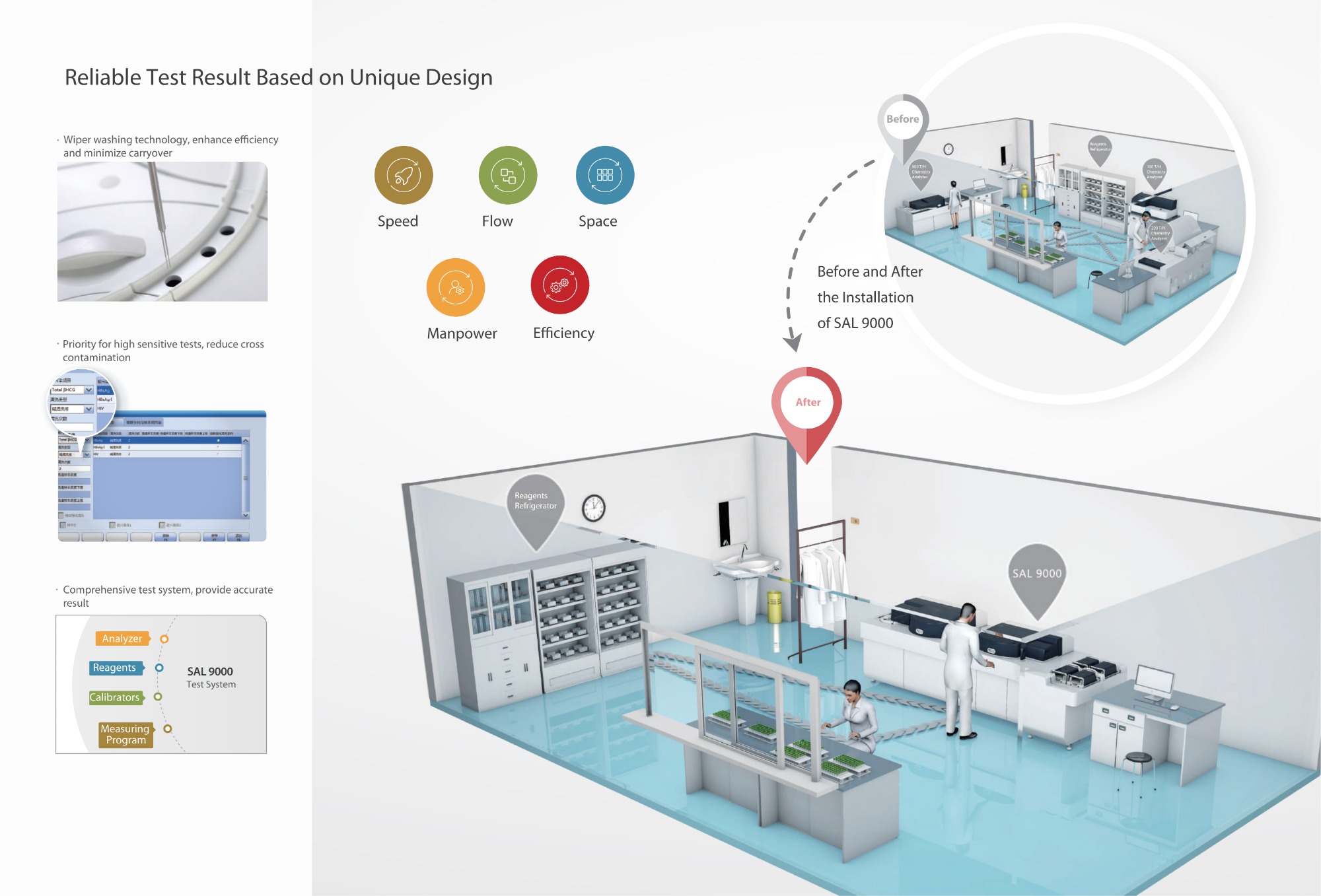 Mindray SAL 9000 is a fully automatic chemistry analyzer designed for high-throughput clinical laboratories. It provides accurate results, fast processing, easy operation, and stable performance, ideal for hospitals, diagnostic labs, and research facilities.