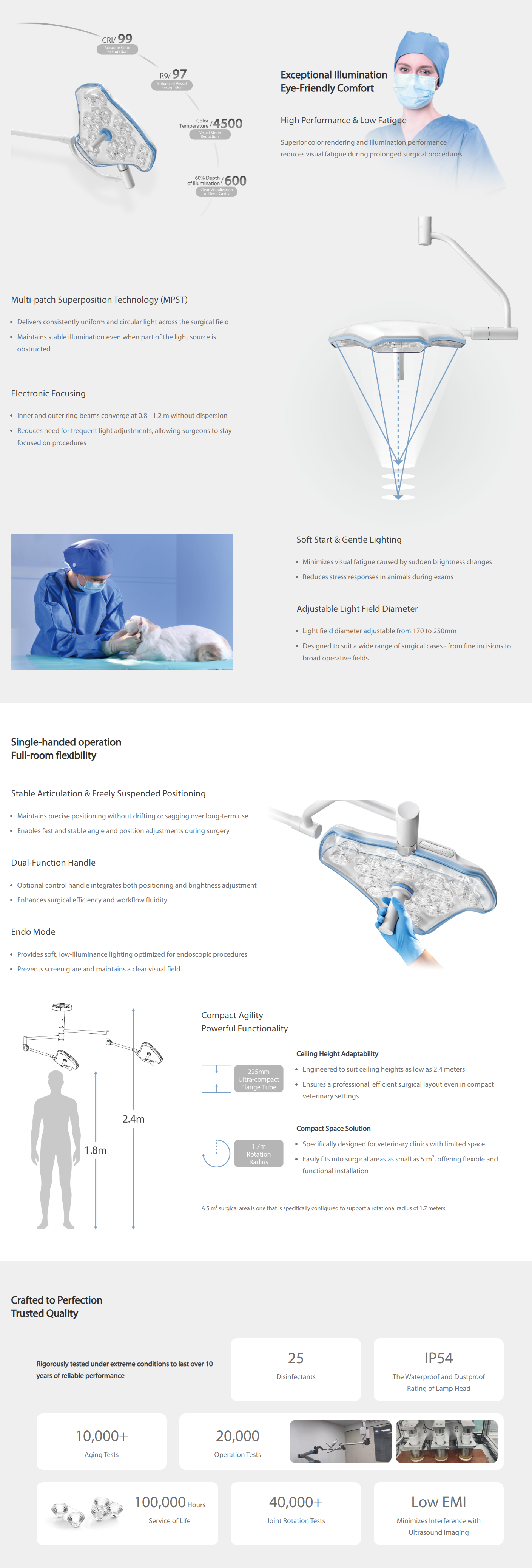 Mindray VeLED Series veterinary surgical lights provide bright and uniform illumination for animal procedures. With adjustable brightness, low heat output, and stable performance, they ensure clear visibility and reliable use in veterinary clinics.