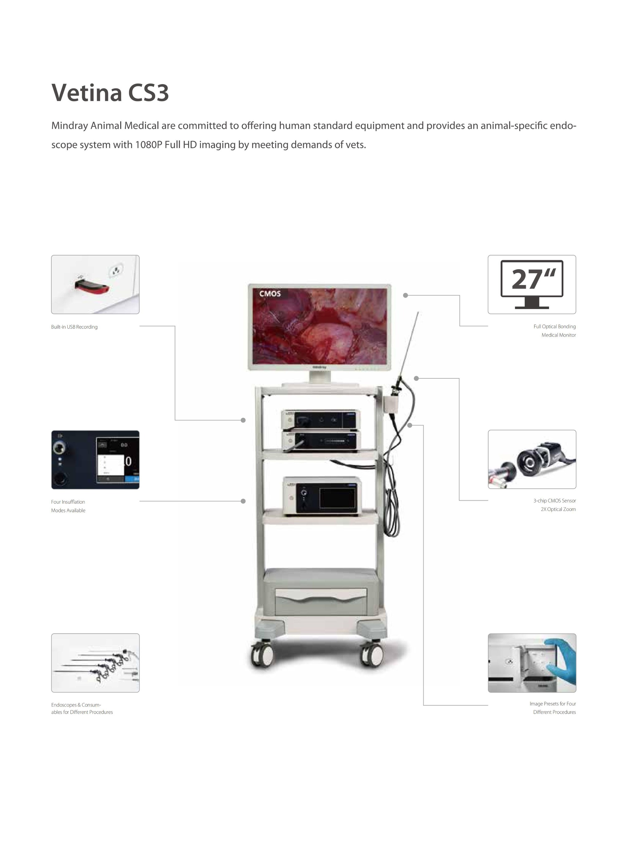 Mindray Vetina CS3 is a veterinary ultrasound system for animal clinics and hospitals. It delivers high-resolution imaging for accurate diagnosis, providing reliable and efficient support for veterinary diagnostic procedures.